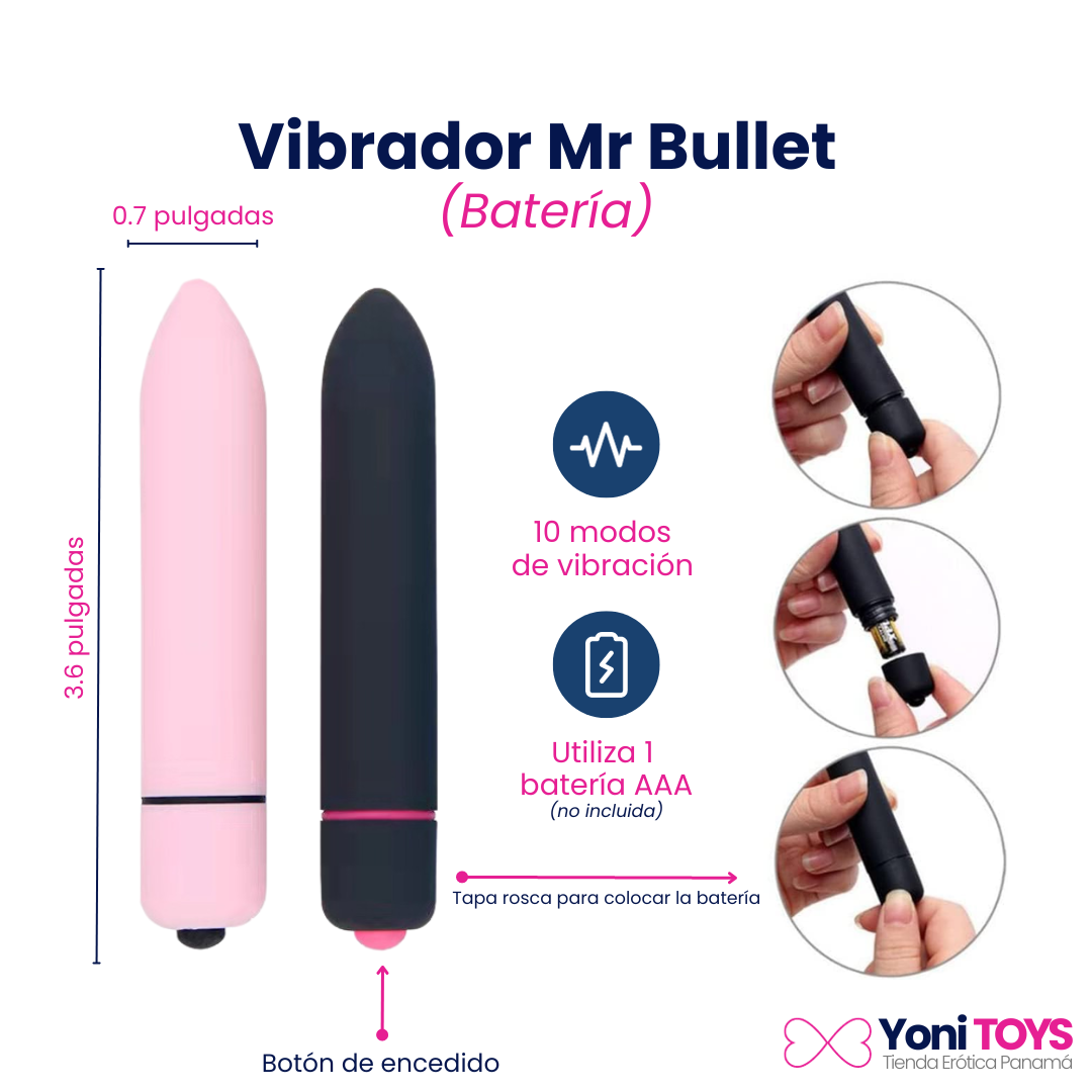 Mr Bullet es un juguete económico pero poderoso, perfecto si es tu primera vez en el mundo de los vibradores. Cuenta con 10 modos de vibración y utiliza 1 batería AAA.